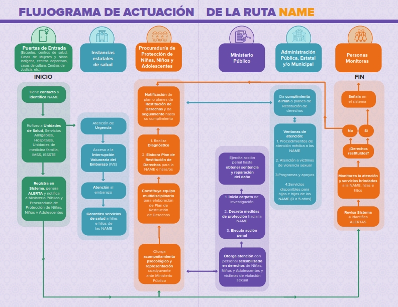 - 1.3 Realizar una capacitación sobre la ruta para la atención y protección integral de niñas y adolescentes, madres y/o embarazadas menores de 15 años (Ruta NAME) dirigido a personas prestadoras de servicios institucionales (salud, educación, desarrollo social, procuración de justicia, cualquier institución que implique servicios) enfocada principalmente a la Ventana 1. Atención en Salud para las NAME; en donde se incluya el derecho a la IVE (Interrupción Voluntaria del Embarazo).